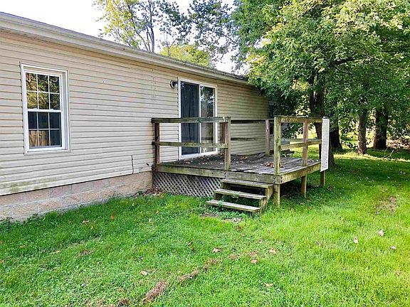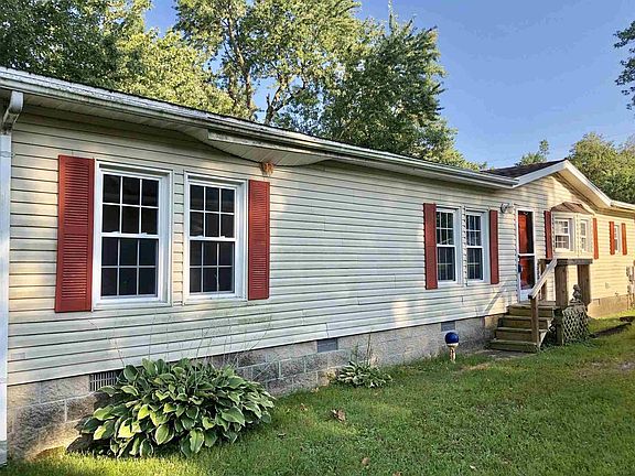 Ranch-style Modular on permanent foundation, Split bedroom floor plan with Great Room, 3 Bedrooms, 2 full baths, kitchen, dining area, laundry, storage shed. Kitchen includes appliances, ample cabinets, planning desk. Great Room has cathedral ceiling, ceiling light fan, and door that leads out to deck. Master Bedroom has 2 closets and Master Bath with double sink vanity, standup shower, and garden tub. Lot size is almost half acre with mature trees, gravel driveway, small storage shed.