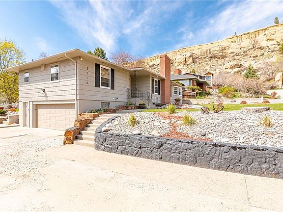 Enjoy end of road privacy & a home nestled below the rims just north of Rocky Mountain College.Large rancher with generously sized rooms, built ins, hardwoods, exposed brick, a butler's kitchen, laundry rooms up & down and 3 gas fireplaces. 5 bedrooms/4 baths include main floor master suite plus a mother in law/teen suite in the lower level. Mature landscape protects the large deck/patio area with pergola & entertaining space