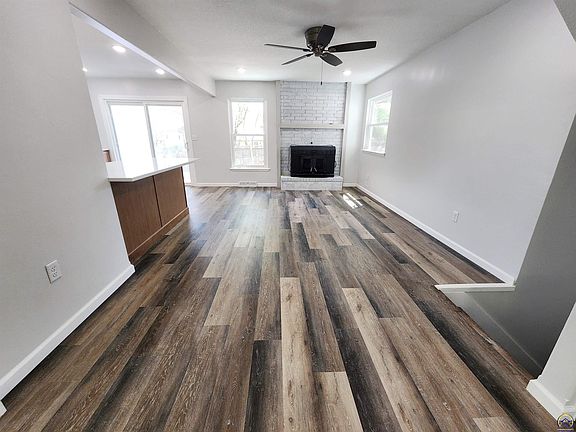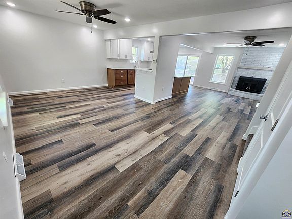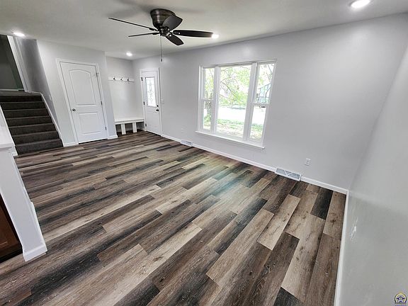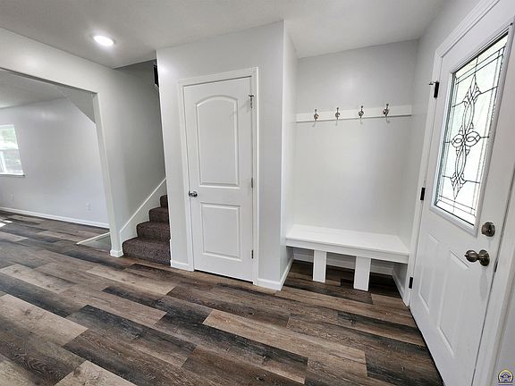 This gorgeous 4-bedroom, 2.5-bath home has been beautifully remodeled! Features an open layout w/new Ball Custom Kitchen cabinets w/pull-out double trash can, quartz countertops, & huge island w/breakfast bar. You can choose which space to make the dining room and living room. Too many improvements to list - exterior vinyl siding, interior paint, flooring, kitchen, double-hung windows, bathrooms, lighting, mini split unit in upstairs bedroom, drop zone bench by front door, garage door opener, furnace & air conditioner, interior & exterior doors, new concrete patio, cleared & seeded yard & more. This home was lovingly remodeled for someone to call home & love for years to come. Sellers are licensed real estate agents in the state of Kansas.
