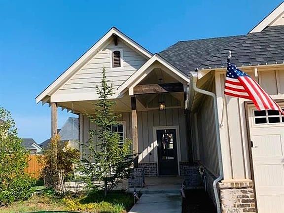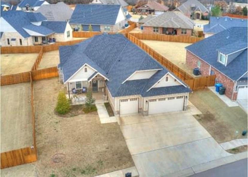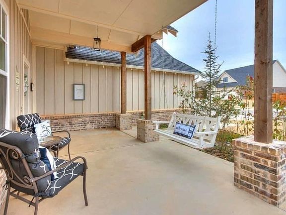 Welcome Home! Your 4 bedroom 3 full bath home with front porch swing welcomes you! Boasting one of the largest lots in the community and includes a 6 person storm shelter too! PLUS built-in grill has direct gas line! Upon entering, you are met by sealed-in wooden flooring throughout home, leading to carpet in bedrooms. 3 car attached garage features a 6 person storm shelter. Office/Study/multi-function space room is definitely a must during the times we are living! A stunning Cathedral wood beamed ceiling stands out in your split-floor plan living area. Wooden blinds in living area windows. Spacious Owners Suite with walk-in closet has shelving and chest of drawers. Main bath has jacuzzi tub and double sinks. Large kitchen island allows for extra seating. Stainless steel appliances. Flex area with board and built in book shelves. Mudroom with cabinets is located next to your laundry room. Concrete floor porch covered patio! Clubhouse with pool access. 1 year Home warranty included.