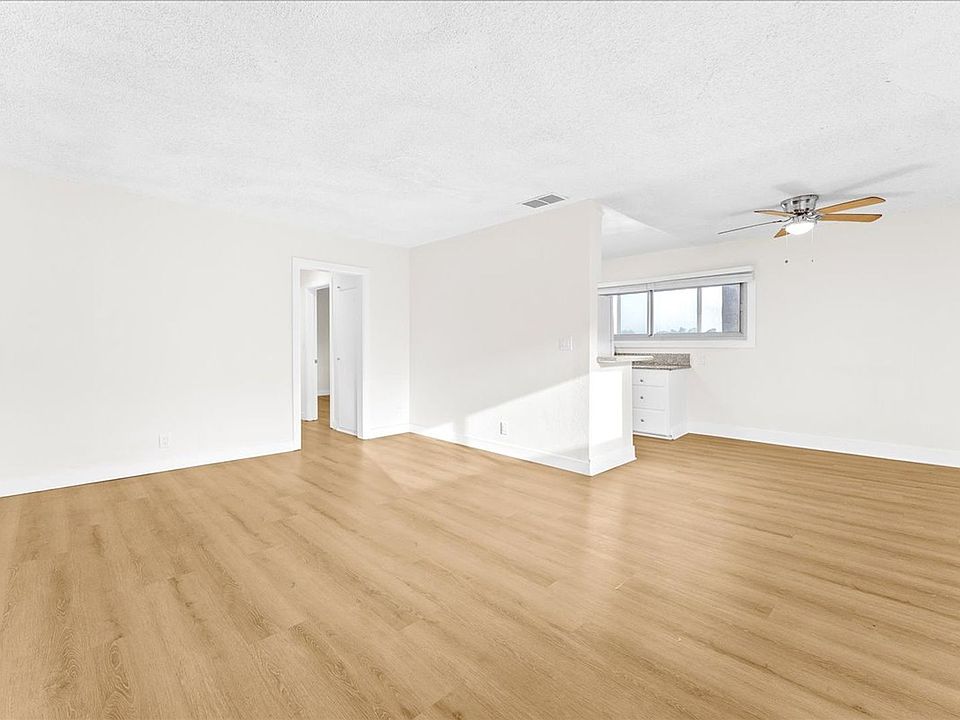 The expansive living room is perfect for unwinding after a long day or hosting guests with ease. A well-placed hallway bathroom separates the two bedrooms, adding privacy and convenience. Each bedroom is generously sized and features built-in closets with smooth sliding doors, offering plenty of storage to keep your space organized and clutter-free.