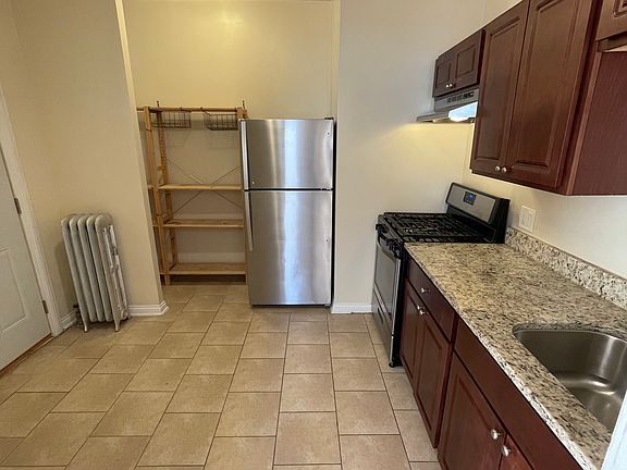 Large south facing 1 bed/1bath with tons of natural light. Stainless steel appliances with eat in Kitchen. Walk in kitchen pantry. Separate living room and dining room. Hardwood oak floors throughout. Porcelain tiles in kitchen and bath. Freshly painted with updated kitchen, and bath. Mini blinds throughout. Heat & hot water included. A/C-window. $200 pet fee required (non-refundable). Limit 1 pet/unit--Max: 30 lbs. 12