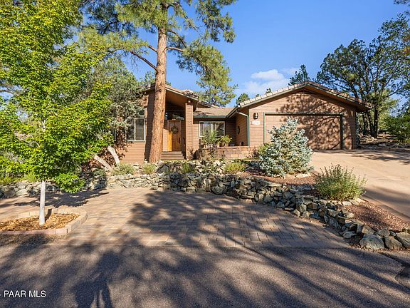 Welcome to this charming 1,800 sf home, perfectly nestled among a picturesque grove of pine trees. Featuring 3 bedrooms and 2 baths, this home seamlessly blends modern, eclectic, and artistic elements to create a unique living experience. Not only do you have a 2 car garage, but you also have an additional parking area in front. With a new roof (installed approx 2 years ago), a brand-new air conditioning system, and a whole-house humidifier, comfort is a given in every season. Inside, you'll find beautiful bamboo flooring throughout the main living areas, enhancing the home's contemporary appeal. The kitchen is updated and comes complete with a wine fridge, perfect for the culinary enthusiast or wine lover. The living spaces are bright and inviting, thanks to large windows that frame