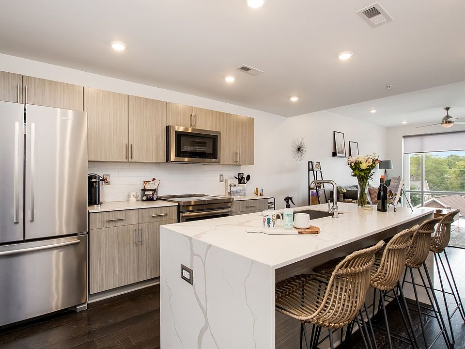 Beautiful, like-new condo in the heart of West End. Tons of natural light pours through huge windows, lighting up the hardwood floors and waterfall island. Walk-in closet and double vanity in the bathroom. Large, elevated balcony with spectacular views. Features an on-site gym & assigned spot in the gated garage. Convenient location with incredible walkability, privacy and peacefulness that's rare so close to Downtown. Furniture is negotiable. Be the first on the waiting list for a lease permit!