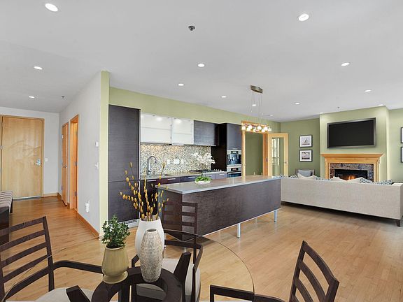 Luxurious condo just across the street from Bde Mka Ska lake! Quiet building, constructed in 2007 with double-insulated walls.This stylish and contemporary condo features 9' ceilings, maple hardwood floors throughout, a stunning Valcucine kitchen with European high-end built-in appliances, an open floor plan with huge floor-to-ceiling windows, a fireplace, and a private balcony with french doors for natural light. Master bathroom boasts a separate tub and shower, an enormous walk-in closet with a full closet organizer system. In-unit laundry for convenience. An open concept floor plan is very practical for modern day living! The unit includes one parking space in the underground secured and heated garage, a storage cage in front of the parking space, and an extra storage area (8x5) in a secured storage room. Great location on the Greenway bike path, near Bde Mka Ska, Lakes of the Isles and Cedar Lake, walking distance to Whole Foods, MGM, Rustica Bakery, pharmacy and more!