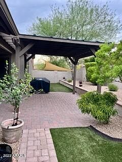 Beautiful home in Tramonto! Great floorplan w/ 2 master suites, 2 additional bedrooms and 2.75 baths! kitchen boasts granite counters, 42'' upper cabinets, pantry and stainless appliances, blinds and fans throughout, wood flooring and tile, outside recently painted with elastomeric, solar completely paid for (Sun Valley Solar Solutions) professionally landscaped yard with pavers, artificial turf, covered patio and nice gazebo, attached garage cabinets with extra storage racks, Deer Valley School district, community pool and neighborhood parks!!