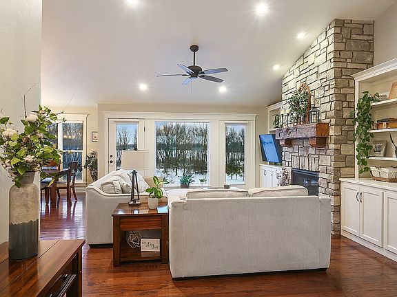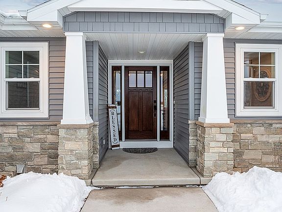 STUNNING, SENSATIONAL, SUPERB waterview walk-out ranch on the east side of Long Lake, on 2.02 acres PLUS on a cul-de-sac w/deeded access to a dock & water! Just a hop-skip-jump from Brillion! Come home every day to enjoy this one-owner, QUALITY custom-built home in 2017. They thought about everything as you tour and see the incredible finishes throughout which includes stunning MAPLE cabinetry, tiled floors, engineered hardwood flooring, GRANITE countertops throughout & more. The minute you enter into the foyer you see GORGEOUS views of Long Lake and it beautiful nature that surrounds it. I LOVE the covered & private patio off the master suite which boasts a lighted & crown molded box ceiling, large walk-in closet, soaking tub, tiled & glass shower & double sinks w/tile floors..VERY NICE! Convenient 1st-flr laundry separate from the mudroom that has bench seat & hooks & a closet! Kitchen w/all granite countertops, POT-FILLER, tiled backsplash, ALL APPLIANCES included....open to dining area w/more views. The living room features harbor blue & stone harbor split face stone from Door County on the gas fireplace and a wall of built-in bookcases. A HEATED garage that can have a separate area for a workshop from the 2 car area...BONUS! Finish LL how you want but we have included a preliminary design for you! All the concrete is in, just need a deck (good summer project)