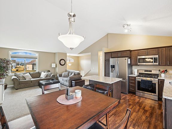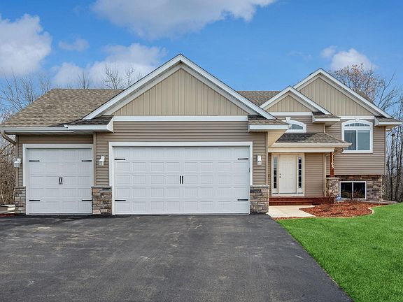 This nearly new Chisago City residence presents a modern and spacious design with an open main living area. The vaulted ceiling creates an airy ambiance. The kitchen boasts the elegant look of Granite countertops. A three-car garage lends ample space for your vehicles, including a full-size truck. The recently finished lower level adds an extra layer of comfort with plush carpeting and a generously sized family room/game room. Enjoy the privacy of a rear wooded view. The convenience of in-ground irrigation will make creating that lush lawn easier. Situated in close proximity to a neighborhood park, this home offers a perfect blend of tranquility and community. Don't miss the opportunity to make this your "home sweet home"!