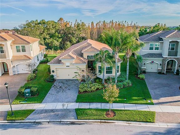 Premium Quality Home, Premium Location inside of the community. Spectacular Paseo floor plan from GL in the gated community of The Ridge. If you are looking for a good sturdy home in a safe and quite neighborhood, this is the house for you. 3 year new, One-story, 4 bed/3 bath home on oversized conservation lot just within a couple houses from the community club and mail center. Double doors welcome you into the spacious foyer with a 14' coffered ceiling that leads you to the family room with tray ceiling, gorgeous open gourmet kitchen with eat-in space/breakfast nook and dinning room. French doors give privacy to the den/office which is also located in the hall area and could be utilized as an additional bedroom. Kitchen has upgraded 42" white cabinetry with pull out drawers, under mount and over cabinet lighting, crown molding, granite countertops with drop pendant lighting, stainless steel appliances, gas stove with custom made travertine backsplash and a lot of storage space. Living room was upgraded with a pre-wire for a surround sound system and mounting package for television. The private spacious master bedroom has tray ceilings and a beautiful nature view. It has his/her walk-in closets, luxurious bathroom with separate his/her wood vanities with granite counters, shower stall with listello accents, tub and private toilette. This house was built with a healthy approach, trying to eliminate dust or any toxic substances in the air. No carpet, vintage oak hand scraped solid hardwood flooring through out the home. AC was upgraded with HVC system (15 seer) with enhanced humidity control. Other upgrades include recessed lights through out the home, water softener, washer/dryer-gas dryer with steam setting, great paved lanai with gas stubbed out for BBQ. Tile roof, brick paved driveway and automatic sprinters system completes this home. This home is a MUST SEE!!