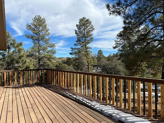 Charming well-kept furnished home in wonderful private wooded neighborhood 1/3 mile to national forest, 3 miles to a Walmart and close to hospital and great schools. Older home but built well and has everything including a gym and a real phone booth. Wildlife is abundant and neighborhood is kid-friendly yet quiet. House is on 2 acres and owners live next door. Nearby forest is great for mountain biking, hiking and horses. Horse boarding close by as well. Family currently living in it so no tour until the beginning of April Fully furnished. WiFi included. Utilities quite low since solar system but still on grid. Probably no pets.