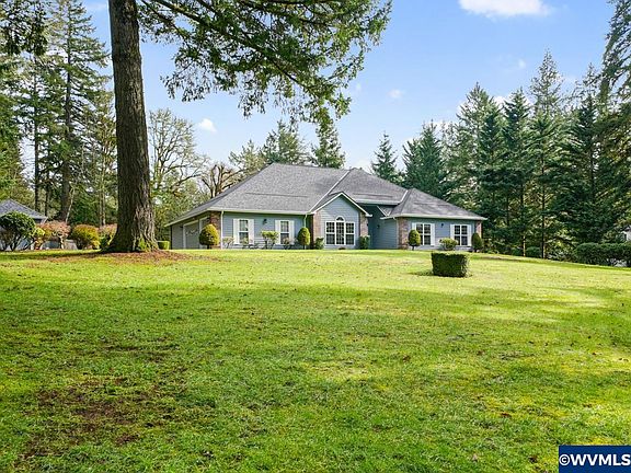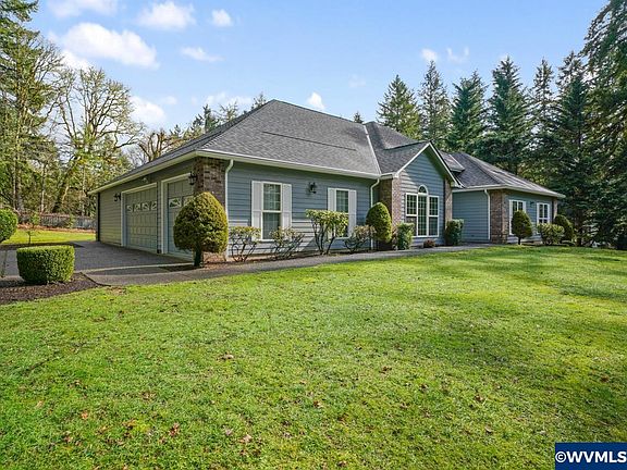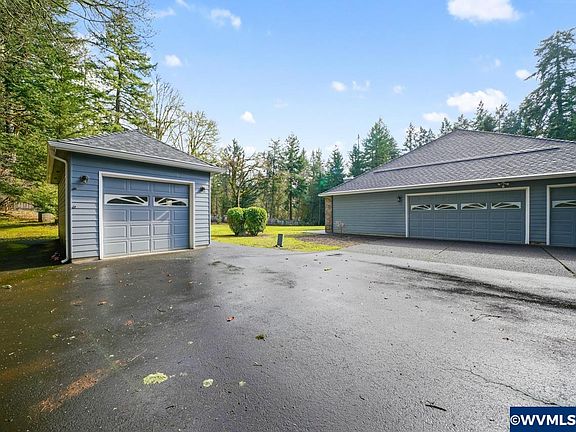 Comfort, ease, tranquility, and elbow room all on one level! Ideal spot just outside town but near south Salem amenities. Private, wooded hilltop site with flat usable acreage & paved roads/driveways. Big bedrooms each with walk-in-closets, living & family rooms, spotless sparkling kitchen with island & stainless appliances; formal, informal, & outdoor dining areas; fab mudroom & extra storage. 3-car garage PLUS auxiliary 4th shop/garage which could be office, guest quarters, etc. OPEN HOUSE SUN 3/5 1-4PM!
