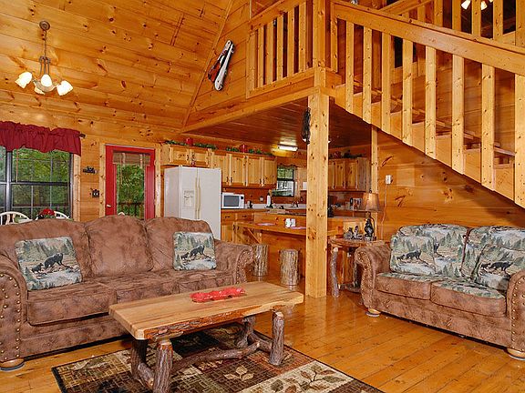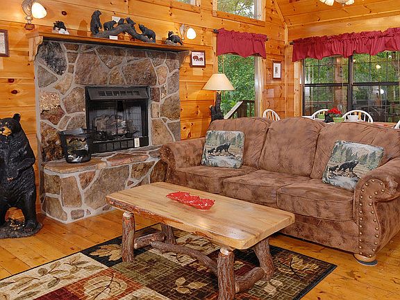 ***Guarantee Rental of $50K***Private log home on 0.71 acres of land towards the end of a cul-de-sac! This unique 2 bedroom, 2 bathroom cabin features hardwood floors, tongue and groove walls and ceilings, hot tub, full kitchen, plenty of parking, covered deck, and plenty of space! Gated community that features a pool, tennis courts, and a 24/7 guard shack! Very private location but only minutes to the area attractions!
