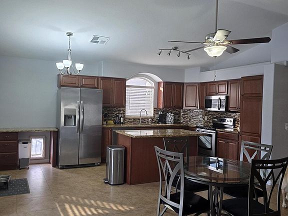 This is a fabulous home! 3 bedrooms 2 bathrooms all tile with high ceilings. Fans in every room and a luxurious pool and patio to enjoy in the hot summer. A large patio for those weekend barbeques and a gated artificial pet grass side yard with dog door access for your pet! A very quiet neighborhood and a great community to call home. Don't miss out on this gem
