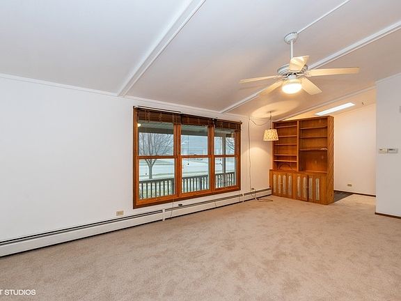 - INTERIOR: Wood Floors, Carpet, Ceiling-9+ ft, Skylight, Tile, Vaulted Ceiling, Bookcases, Foyer-Entrance