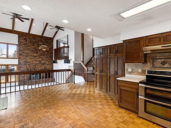 Rare Contemporary modern home nestled near the Lynn Fuhrer woods with miles of walking/running trails and easy access to ISU golf course for winter sledding. This unique home has excellent natural lighting esp. in the main floor open spaces with southern and western light, a floor to ceiling brick fireplace in a cathedral ceiling great room with 2 walls of windows from which views are beautiful towards the western sky. A unique split level, this home has built in bookcases and shelving, coiffered ceilings, balcony in 2nd bedroom up. Main floor bedroom, upstairs master on suite bath fully remodeled, 2nd bedroom and another full bath. Third level is above grade (note that this is the 1st level on the rooms description) and has a 3/4 bath remodeled, 2 bedrooms. Basement has a large family room and 6th bedroom, completed in recent years. The bedrooms are very large, all except one have walk-in closets. Your family will enjoy all the flexible spaces, the open concepts and the solid building features of this rare home with cedar siding. Kingman and Amherst is its own little neighborhood, quiet with no drive through traffic. Touch electronic thermostat, 2+ garage, stone deck and patio. Open house Saturday from 1:30 to 3pm on 26th!! The Sellers will not review or accept any proposed Purchase Agreements/Offers until the end of the period of consideration on February 28th at 2pm.