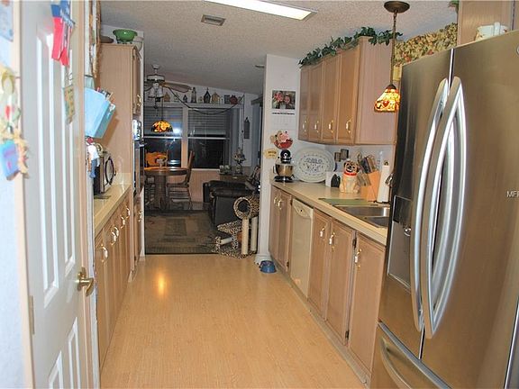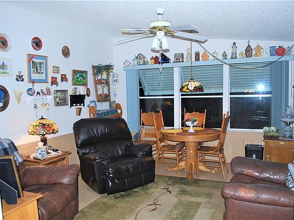 Welcome home to one of the most beautifully maintained Manufactured Home communities in Lake County. This double wide 3 bedroom 2 bath split floor plan home is situated on a park like setting with boardwalk on the property leading to the CANAL and 1/2 mile community boardwalk. Bring your boat and tie it to your private dock for convenient access to boating on the Harris chain of lakes. A/C is less than a year old, Membrane roof comes with a life time guarantee and new garbage disposal. Large formal living and dining room area great for entertaining. Family room and sun room look out over the picturesque back yard. This home has ample closet space and storage with a shed at the back of the 2 car car port. Community features 2 pools, private dock, and club house for activities.