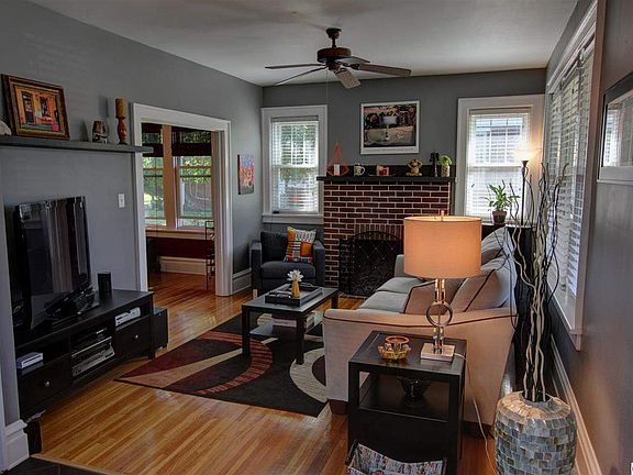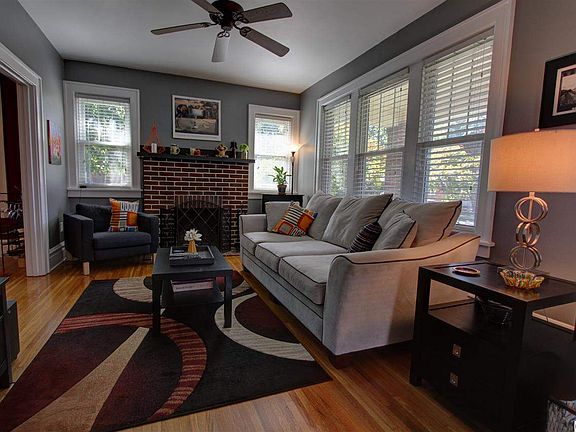 Immaculate all brick home w/upgrades throughout. 9 ft ceilings on 1st flr. Beautiful refinished h/w in LR, DR, & two bdrms. Upstairs was completely refinished into mstr bdrm w/half bath & plenty of closet space. Upstairs offers ductless a/c & heat recessed into ceiling. Full bath upgraded w/new heated tile floors, tub, & vanity. Kitchen w/ceramic flrs leads to beautiful rear yard offering patio. Covered front porch. Newer roof!