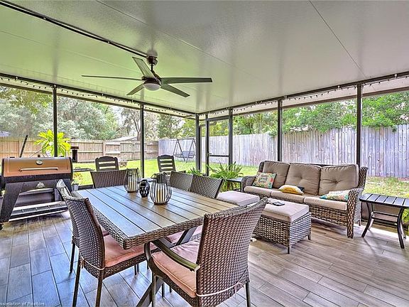 Inviting 3 bedroom, 2 bath 1,600 square foot home with lots of upgrades! Metal roof, new toilets and screens, tile and vinyl flooring. The HUGE family room sits in the center of this house just off of the dining room and kitchen. The kitchen features stainless steel appliances, a breakfast bar, and plenty of cabinets for storage. A newer barn door separates the main living area from the bedrooms. The primary bedroom has a walk-in closet and an en-suite bathroom with a tiled shower. The second and third bedrooms feature large closets, newer flooring, and lots of windows. If you enjoy dining al fresco the huge back patio is for you! There is plenty of room for an outdoor living AND dining area as well as the grill in the screened porch. The fully fenced backyard has a stone fire pit, mature shade trees and a storage shed. A perfect yard for pets or kids or both! Make this your family home today!