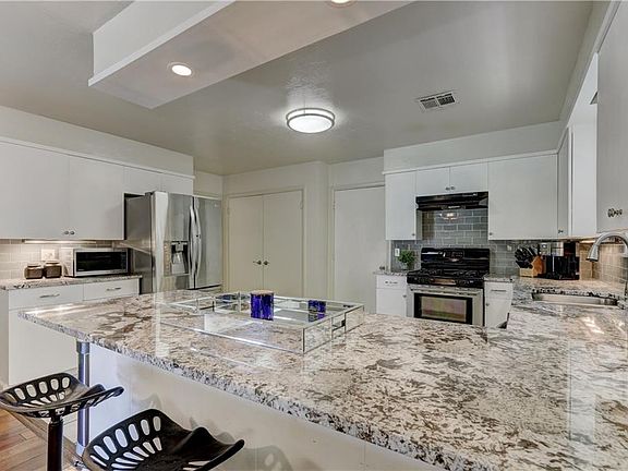 ACT FAST! This updated home features a spacious, open floor plan with 2 living rooms! The first oversized living room open to the dining area and surrounded with large floor to ceiling windows and french doors that open to the backyard. The second living room features a wood burning fireplace and is open to the completely updated kitchen with granite countertops, glass tile back splash, painted cabinets, & and breakfast bar! Engineered wood floors throughout main living areas & hallway. Exterior features large backyard with flower beds along the back fence, a fenced off dog run, & extra concrete for an extended patio. With all the open space inside and outside, this is perfect for the entertainer in you! And did I mention the LOCATION! This home is located near Hefner Expressway and NW Expressway. You're just minutes away from anywhere in the city!