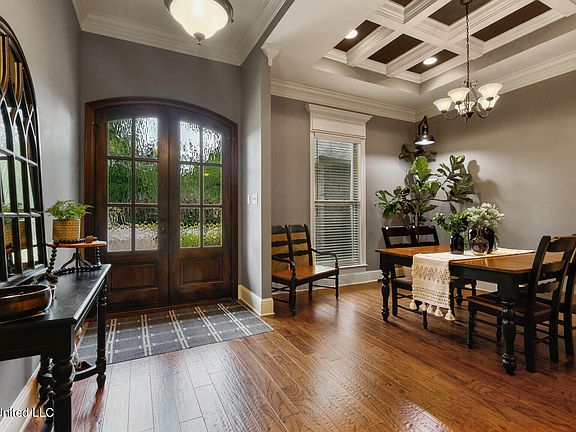 This stunning 4 bedroom, 3 bathroom home is located in the desirable Ocean Springs school district within the Oakleigh subdivision and boasts an open floor plan that is perfect for entertaining guests. The living room features beautiful built-ins and a cozy gas fireplace, while the formal dining room with beautiful designed ceiling, is perfect for hosting dinner parties. The chef's kitchen is every cook's dream, with a gas stove, separate oven, farmhouse sink, built in wine bar, and stainless steel appliances, including the refrigerator.