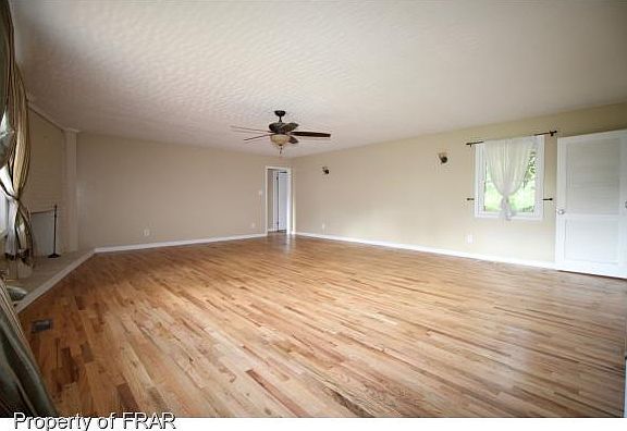 -This 3bd, 2ba home is what you've been looking for close to everything! The home features 4 acres, 2 stocked ponds, nicely wooded back yard for privacy and a split floor plan. The living room is oversized with hardwood floors, fan and lots of natural light. Bedrooms 2 and 3 also have hardwoods floors and one full bath on that side of the home. The master is located on the other side of the home with a gorgeous fan complimenting the room and tile flooring. $10,000 in new concrete work!