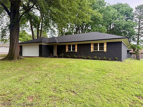 Welcome to this beautifully updated brick home, offering 1,854 sq ft of modern comfort and style. This spacious residence features 3 generously sized bedrooms and 2 renovated bathrooms. The expansive living room is perfect for entertaining, showcasing soaring cathedral ceilings and a cozy fireplace that anchors the space. The stunning new kitchen is a chef’s dream, complete with upgraded cabinetry, granite countertops, and sleek stainless steel appliances. Throughout the home, you'll appreciate the attention to detail—from the brand-new flooring and fresh interior paint to the updated lighting, new doors, and modern hardware. A brand-new roof enhances the home’s longevity and curb appeal, while the oversized attached 2-car garage provides ample room for storage and convenience. Step outside to discover a detached shop, ideal for projects, hobbies, or additional storage. The backyard is fully enclosed with a wood privacy fence and includes a spacious patio area—perfect for outdoor dining and relaxing. Conveniently located near shopping, schools, and with easy access to I-40, this beautifully updated home is truly a must-see!
