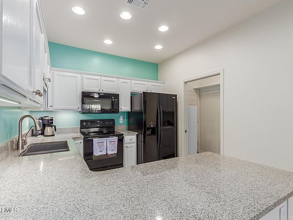 Your place in the sun is waiting for you. This fantastic 2 bedroom/2 bath condo has numerous upgrades you will want to see to appreciate. Upgrades: interior laundry room feature, guest bedroom w/closet, complete water system and RO, dual sinks in primary bathroom, comfort height toilets, pocket door at primary bedroom to bathroom for privacy, front slab & deco wall, and more. Check out the recently painted cabinets throughout with added under and over cabinet lighting in the kitchen, 3 ceiling fans with wall control switches, neutral flooring and walls, with tasteful accent walls for pops of color, insulated garage door, full attic decking for additional storage. Really!! You need to see this home. Be sure to check out the SSV development amenities...You will want to call this place home