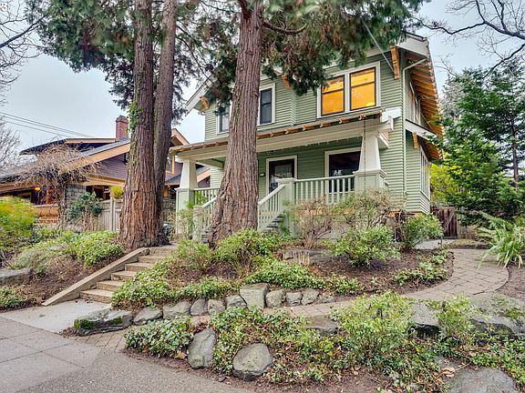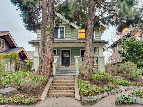 Portland classic adorned w/big front porch, majestic trees & exquisite Victorian architecture. Built in 1909, this special home retains its original interior details: built-ins, natural wood finishes, crown molding, high ceilings, hardwoods, beautiful fixtures, fireplace & much more. 3 large beds & 2 baths, 1 w/luxurious clawfoot tub. 2 decks out to nice-sized backyard. Tons of potential in unfinished attic & basement. Newer roof. Easy jaunt to the excitement of Division & Clinton! [Home Energy Score = 1. HES Report at https://rpt.greenbuildingregistry.com/hes/OR10207002]