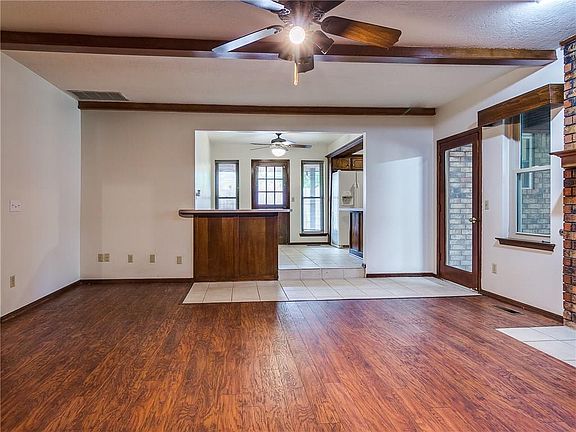 WEST SIDE NORMAN in Truman School district, a unicorn of a deal with this 4 bedroom priced under $88/ft! A well maintained home in River Oaks offers wood floors in the living and master bedroom, carpet in the other 3 bedrooms, and tile in the rest. A wall of wooden built-ins and a fireplace with mantle gives this a homey feel. Kitchen is equipped with a gas cooktop and lots of counter space, resulting in 2 separate bar areas. Updated and coordinated shower liners in both bathrooms. There is a sunroom in the back, and that 162 SqFt IS NOT INCLUDED IN THE SQUARE FOOTAGE... Priced low to allow for updates! New french drains with pump.