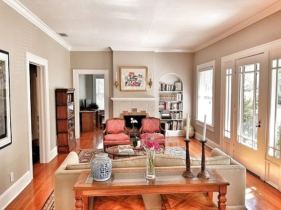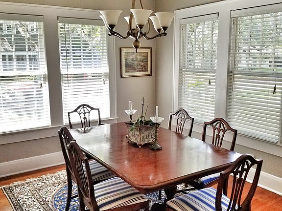 If you want warmth and character this charming home will appeal to you! When you enter the living room and see the original wood floors, high ceilings, the brick wood burning fireplace, the bright and roomy dining room, you immediately feel at home. Off the living room is a former sun room that is a perfect home office. This leads to the master bedroom suite with large walk in closet and private bath. Separated from the master are two darling bedrooms with a bath off a short hall. The kitchen opens to a roomy Family room, so you can cook and watch your family together. The lovely porch off the family room looks out over a great back yard shady and inviting. Plenty of room for a play area and a sun filled area that could be a great place for a pool. Roof is approx. 10 years old. This charming bungalow is located is a family oriented neighborhood, shaded by old oaks.The washer and dryer do not convey, nor does the basketball goal.