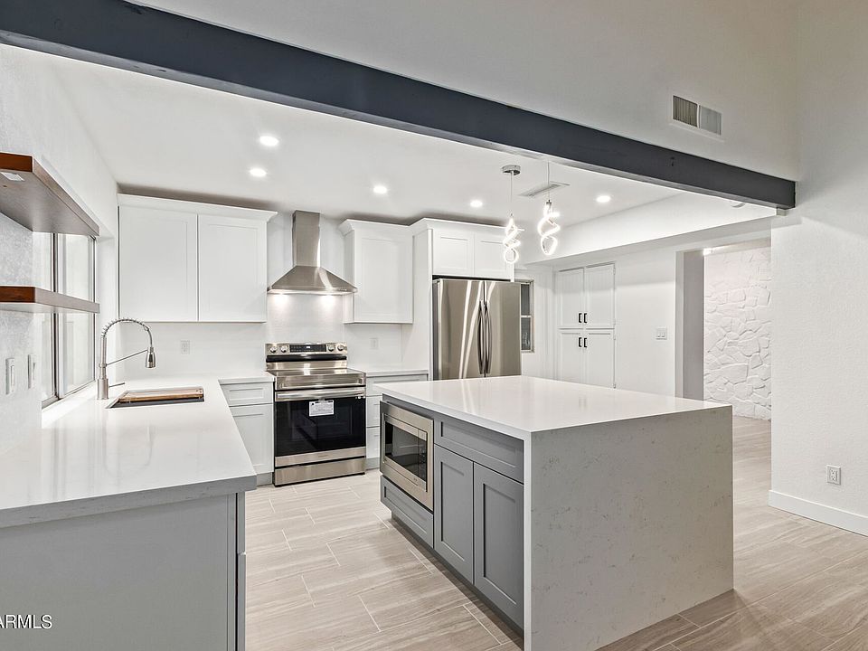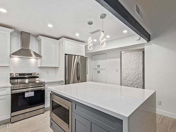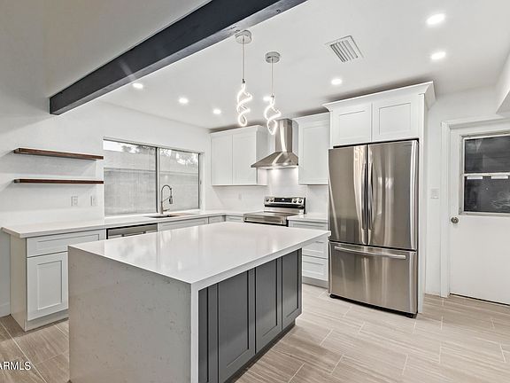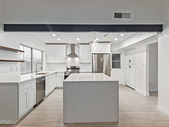 MOVE IN READY! North Phoenix, freshly remodeled, gorgeous 3bd/2ba home in a quiet, well maintained neighborhood with NO HOA! Brand new, contemporary, open-concept kitchen features high-end, shaker style cabinets, low maintenance quartz countertops, Large island with a built-in microwave and Luxe waterfall edge, Stainless steel appliances including range hood and LED lighting throughout. Home comes with all-new tile and laminate flooring, Fresh paint and lots of natural lighting. Upgraded bathrooms, LED vanity. Gather around a classic fireplace underneath grand vaulted ceilings or enjoy the large backyard with a covered patio, double RV gates. Two car garage with storage closet and your low maintenance front yard. This home is a beauty all around, don't miss out.