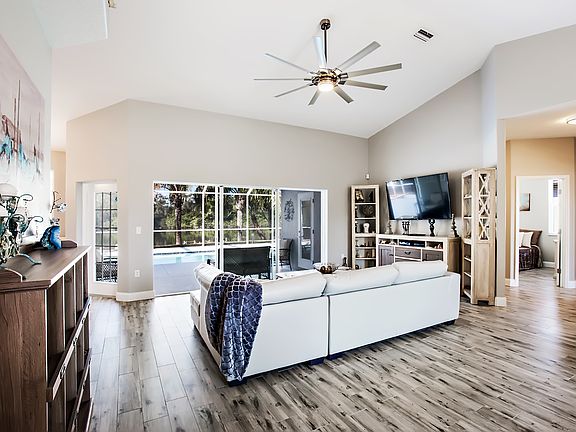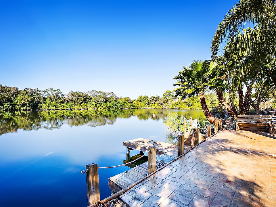 STRAIGHT OUT OF A MAGAZINE! Impeccably modernized and upgraded for even the most discerning buyers. Custom handmade glass front doors open to an impressive view of the salt-water pool and private lake with private dock. The triple sliding glass doors in the living room open to expand the living space to the outside covered patio where you can watch otters playing or relax on your dock while you fish. Inside the upgrades are too many to list. Large open kitchen with solid sparkling Quartz counters, wood cabinets and full package stainless steel appliances.The master is just as impressive with access to the pool and views of the lake. The bathroom offers double sinks with marble counters, glass accent tile, free standing tub and the most amazing shower you have ever seen! Located within minutes to Anna Maria Island, Longboat Key, Bradenton Riverwalk and all the beautiful sandy beaches the Gulf Coast has to offer. All the shopping you could want is just around the corner. Split bedrooms and extra large second bathroom with access to the pool. Producing fruit trees, fully finished garage, private dock on private lake, full 1 acre lot with no neighbors in the back. Porcelain wood look tile throughout the entire home, large windows allowing natural light in every room, fresh paint inside and out, pool heater, re-claimed water sprinkler system and contemporary chandeliers and ceiling fans. Schedule your appointment today to view this show-worthy property on a private lake.
