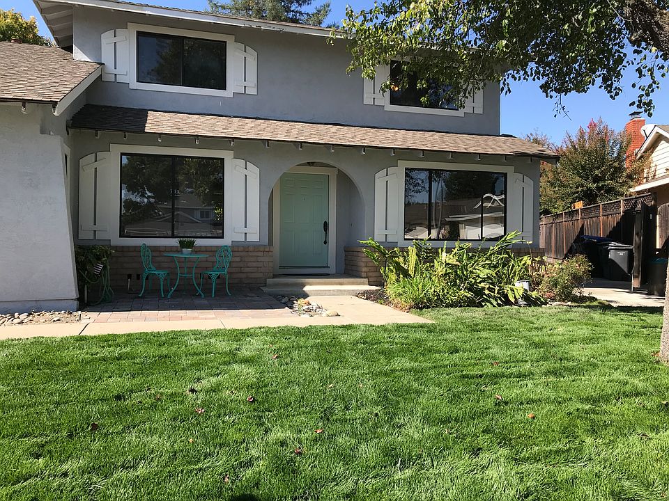 Located in a quiet court this home is nicely updated with new carpet, baseboards, interior and exterior paint, tile entryway, new wood laminate floors, ceiling fans, dual pane windows throughout and new rain guttersEnter this former model home with a spacious entryway complimented with a formal living and dining room; The family room is an entertainer's dream come true with a fireplace and media niche! The remodeled gourmet kitchen has granite countertops, beautiful cabinetry, updated appliances, ample counter space and convenient additional pantry. Enjoy the Sunday newspaper and a cup of coffee in the comfortable breakfast nook. The downstairs has a bedroom and full bath. There is an additional downstairs bonus room that can be used as oversized office or additional bedroom. Walk into the master suite with a large master bath and closet. With two more rooms to offer and a newly updated bathroom, there is plenty of space for everyone.Convenient side yard access providing ample space for RV/trailer parking. Backyard includes garden space, large patio area and ample fruit trees for your enjoyment. Enjoy the community Cabana Club with in the Meadow Park neighborhood. California Distinguished Schools are at your fingertips and downtown Pleasanton within minutes offers dining options and shopping.