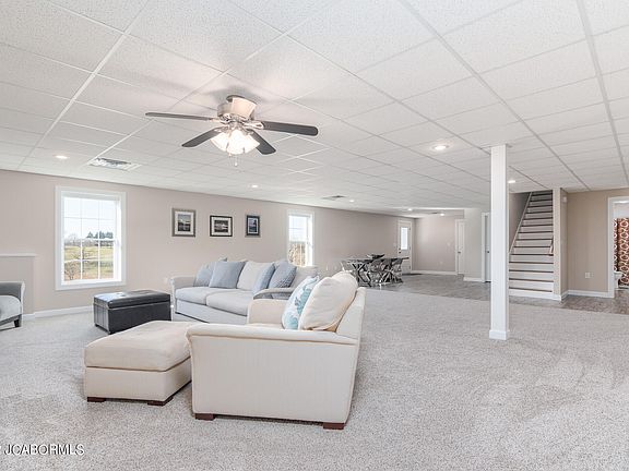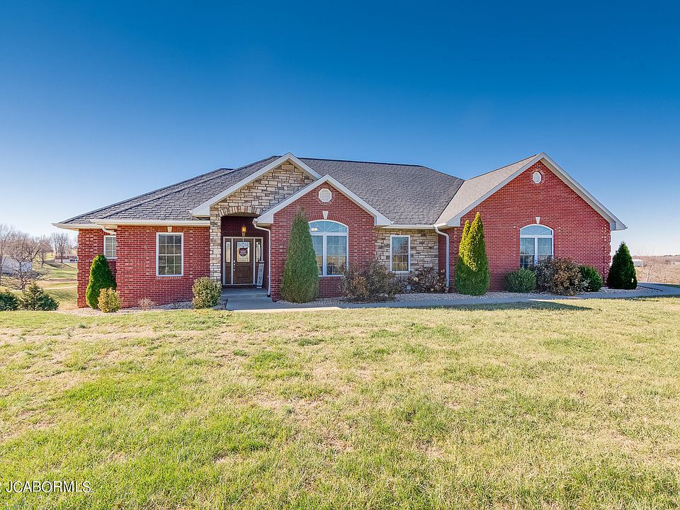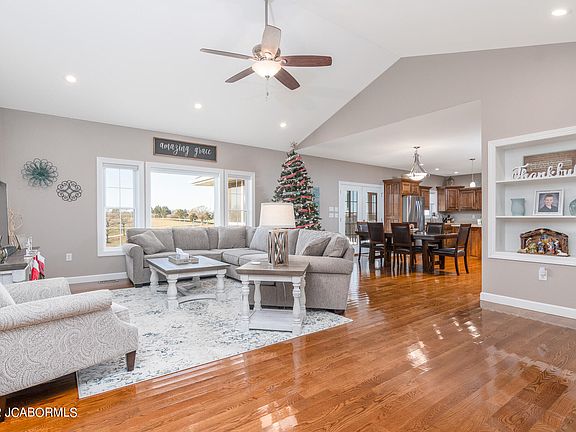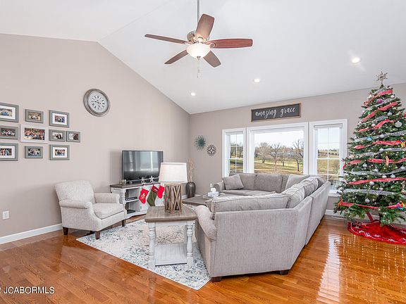 Immaculate property nestled on 5 acres in Blair Oaks! This 4 side brick home was built in 2014. Enter the home to a large vaulted ceiling living room and open concept floor plan. Beautiful hardwood floors throughout with lots of natural light. The kitchen boasts of cabinets with tons of counter space and storage. Large eat in island as well. The screened in back deck offers great experiences. Oversize laundry room with custom cabinetry, pantry, and half bath. Deep two car main level garage. Large master bedroom with a gorgeous master suite. Suite offers a double vanity, walk in closet, and oversized tile shower with soaking tub. Main level offers 3 bedrooms and an office. The basement offers a large open room perfect for entertaining and games. This home offers tons of storage on both levels and in the suspended basement garage. This beautiful property is just outside of Jefferson City and sits on a beautiful 5 acre lot. Do not miss out on this rare opportunity. Call to see today!