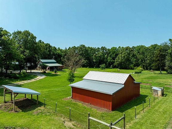 Ozark Homestead Dream – 25+/- Acres with Custom Home, Creek & More! Tucked at the end of a private drive, this secluded 25+/- acre property has everything you need for off-the-land living! The custom 4 bed, 2 bath home features a spacious kitchen, dining (or second living room), 2 bedrooms upstairs, a guest bedroom, office, large primary suite with handicap-accessible bath, and laundry room—all on the main floor. Outside, enjoy fenced and cross-fenced pasture, a barn with goat fencing, chicken coop, fruit trees, raised garden beds, and a year-round creek. There’s an RV hookup and tiny home pad with septic (per seller), water, electric, and underground propane lines. A root cellar/storm shelter offers extra storage or safety. Perfect for homesteaders, hunters, or anyone craving rural life with modern touches!