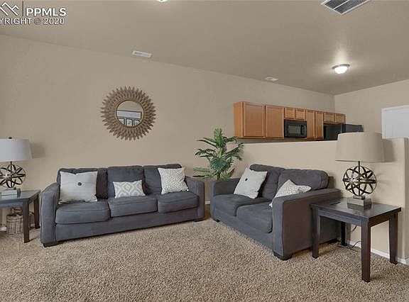 Trendy 2 story townhome in the beautiful Soaring Eagles community w/ attached 2 car garage & private, fenced front porch. Open & airy floor plan throughout. Kitchen features island bar, eat in dining room & walk in pantry. Large master bedroom offers private full bathroom & huge walk in closet that should count as another room. 2 add'l bedrooms, guest bathroom & laundry room around out the upper level. Conveniently located near Peterson AFB, Fort Carson & minutes from the interstate for easy commute.