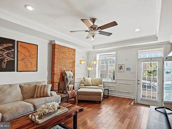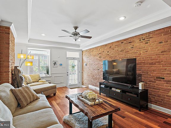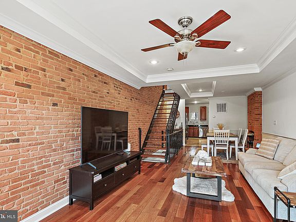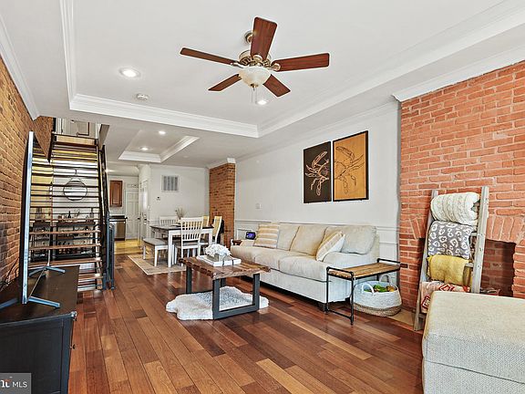 Gorgeous, Brick-Front, 2 Bedroom, 2.5 Bath Canton Rowhome with Private Rear Patio & Rear Deck, Must be Seen! Enter the home into the Bright Living Room with gleaming Hardwood Floors, Crown Molding, Chair Railing, Tray Ceiling, Recessed Lighting, Exposed Brick and Faux Fireplace. Continue to the Dining Room with Tray Ceiling, Crown Molding, Recessed Lighting, a second Brick Faux fireplace and Chair Rail. The Eat-In Gourmet Kitchen features Stainless Steel Appliances, Gas Cooking, Granite Counters, Crown Molding, and a Breakfast Bar! Continue to the Private Courtyard Patio with raised flower beds, perfect for Entertaining! Make your way upstairs to find the Primary Bedroom with Maple Hardwood Floors, Ceiling Fan, Wall closets and Primary Bath with Stand-Up Shower, and Vessel Sink Vanity. Also on this level is a Second Spacious Bedroom with Hardwood flooring and its own rear deck! A Full Bath rounds out the Upper Level. The Finished Lower Level features a Family room, Laundry, and Half Bath. This Home is Walking Distance to Restaurants, Bars, Shopping, Canton Waterfront and all that Canton Living Has to Offer!