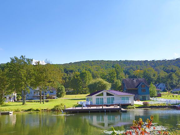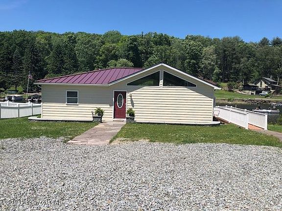 This stunning ranch home was built only 3 short years ago. Pristine views of the largest natural lake in Pa. Walk out your back door and take a dip in the lake or fish right off your private dock. This contemporary home features a metal roof, large dock, gas heat, granite kitchen and hard wood throughout. There is exterior accent lighting including pathway dock lights that illuminate the walkways.