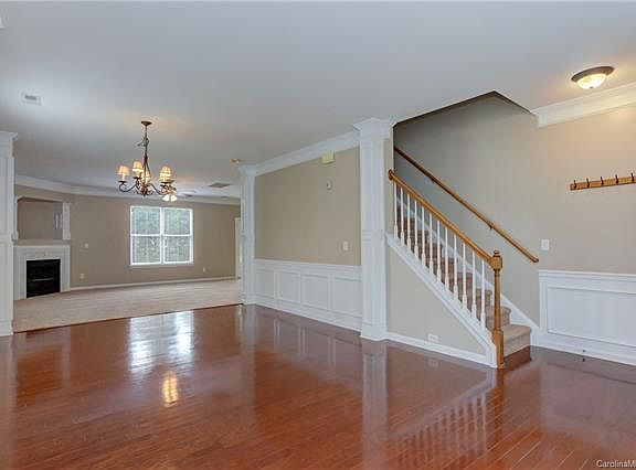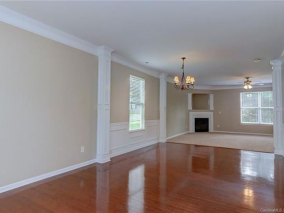 Move-in ready! Entire interior of home repainted and all new carpet. Stone accented front porch welcomes you into the foyer. Open formal areas have hardwood floors and decorative column moldings. Spacious family room with corner fireplace is open to the kitchen with raised panel cabinets, granite countertops & tile backsplash. Stainless steel smooth top range, microwave & refrigerator. Island offers raised bar seating for casual meals. Staircase opens to a large bonus room perfect for a media room or playroom. Vaulted master with walk-in closet has a deluxe bath with garden tub & separate shower. Spacious bedrooms all have overhead lighting. Patio overlooks fenced back yard with privacy landscaping. Community clubhouse, pool & tennis minutes to I-485 access! 1 year home warranty included.