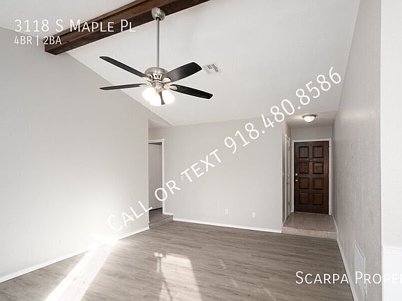 Step into 3118 S Maple Pl in Broken Arrow, where a fresh remodel meets practical living. Spread across 1,324 sq ft, this home features 4 cozy bedrooms and 2 full bathrooms, offering a clean and modern living space. The living area, with its durable wood-look flooring and updated ceiling fan, sets the stage for a comfortable family environment. The efficient kitchen is equipped with white cabinetry and dark countertops, accompanied by reliable appliances ready to handle daily meals. The bedrooms promise restful nights with plenty of light and storage. In the bathrooms, you'll find functionality paired with updated fixtures and crisp vanities. The fenced backyard presents ample space for play, relaxation, or a weekend barbecue. Located in a friendly neighborhood, this home is conveniently close to schools, parks, local shops, and dining optionsideal for those seeking a blend of suburban tranquility and community connectivity. At 3118 S Maple Pl, you're not just renting a house; you're choosing a lifestyle that keeps all your needs within reach. Rental Requirements & Terms: Lease Duration: 12 to 18 months, aligning renewals between March & August. Month-to-Month Option: Available at a 20% increase in rent, plus a $20 monthly administration fee, on signing or after the initial lease term. Move-In Costs: First month's rent, security deposit, proof of renter's insurance, and utility transfer confirmation are due at move-in. Income: Applicants must have a combined gross income equal to at least 3 times the monthly rent. Rental History: No evictions recorded in the past 5 years. Credit & Background Checks: A $45 non-refundable fee applies for each applicants over 18 to cover these checks. Credit Score: A score of 620+ is required. Alternative Solutions: Applicants not meeting the credit score requirement may present a qualified co-signer or opt to pay an additional security deposit, subject to approval. Criminal History: Applicants must have no violent felonies or misdemeanors related to document falsification. Pets: Dogs under 65 lbs are welcome with a $45 monthly pet fee; no cats, but other caged pets are considered. Lease Administration Fee: A one-time fee of $100 is required upon lease acceptance. Mandatory Resident Benefit Package ($30/month): Utility Concierge Service: A personalized service to help set up utilities, find the best deals, and manage connections seamlessly. 24/7 Troubleshooting: Instant video chat support with expert technicians for emergency maintenance issues. Financial Protection: Up to $2,000 reimbursement for accidental damages, missed appointments, lockouts, etc. Home Lifestyle Services: Coordination of tasks such as home cleanings and furniture assembly via Latchel. Benefits Marketplace: Special offers including cash back, rent rewards, and credit building. Exclusive Latchel Perks: Compensation for missed maintenance appointments, complimentary hotel stays during unresolved overnight emergencies, and more.Full Kitchen Remodeled