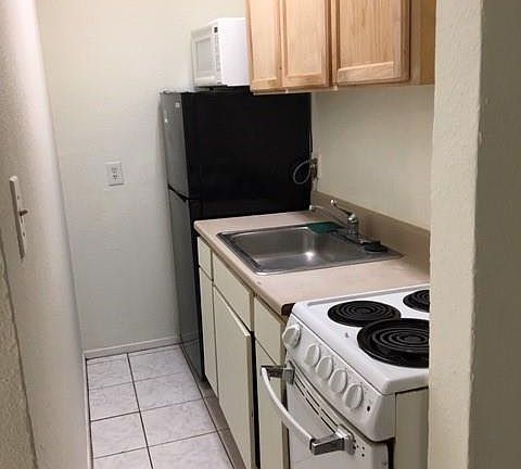 New paintKitchen with refrigeratorOne-bedroom unitsEfficiency unitsNew tile floorParking inside the gate