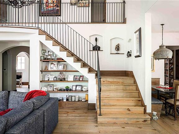 In-law suiteWarm stone finishesLarge flat backyardLarge central islandHome gymPrivate beautiful stone patioWrought iron accents