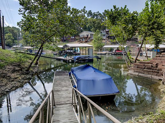 Gran Tara lakefront property with a swim dock, custom built home with stone floors throughout, open living space with fireplace, large screened-in porch overlooking grand lake, 3BR 2.5 BA in main home, detached one car garage with a full bath, bar, and a room for a bunk bed, and then enjoy all of the amenities that Gran Tara has to offer such as a park, swimming pool, boat ramp, and clubhouse!