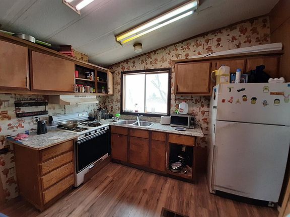EXCELLENT VALUE - with a private well, natural gas, very close to paved road and on the west side of town. This home has 3 bedrooms, 2 bathrooms, newer laminate flooring, newer hot water heater, central heat, roof mount evaporative cooler, large pantry, and a large water tank on the property. There's plenty of room for your animals and toys on 2.15 acres. This property is ideal for your mini ranch.