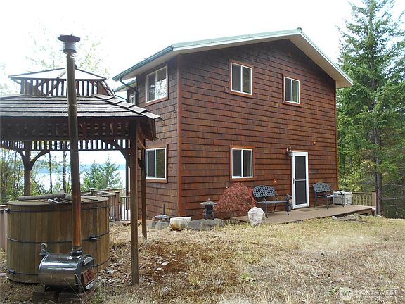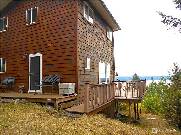 View cabin on half an acre in private, secluded setting. Comes fully furnished with 2 bedrooms and 2 baths. Security gates at highway and at property entrance. Cozy interior finished with wood and rock makes for a warm and comfortable setting. Has wrap around deck with 180 degree view of Hood Canal. Very well built with metal roof and solid foundation. Peaceful and quiet. Great get away, or tuck in year round.Nearby marinas, state parks, national park and public beaches.