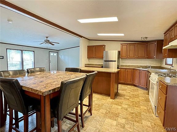 Well maintained 3bdrm 2 bath 1,248 sqft home on almost half an acre. Property features a large eat-in kitchen/dining room combo with island/breakfast bar and nice size living room. Off the kitchen is a breezeway to hang your coats & take off your boots from outside with a laundry room area. There is a primary bedroom with ensuite and two other bedrooms and a full bath. Outside there's a nice deck with gazebo to enjoy cooking out and relaxing. Yard is fully fenced and features a garden area with composter, fish cleaning station, Concord grape vines and plenty of room for playing & entertaining. Workshop has electric and plenty of room for all your outdoor equipment & tools. There is a shed for extra storage. Landscaping as been all done for you with perennials and fruit trees (Cortland & McIntosh Apples & Pear) and nice blacktop driveway. This home has so much to offer!! Located within 10min of Fort Drum & 15min to Watertown.