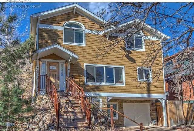 Coveted foothills location backing to Mt.Sanitas open space. Beautifully updated home with hardwood floors thru main & upper levels. Inviting spaces include chef's kitchen with granite counters & cherry cabinets, living room with fireplace & west windows, and master suite offering high ceilings, balcony & luxury bath with pedestal sinks & free-standing tub. Deck surrounded by tiered landscaping, bridge over Silver Lake Ditch, opens to hillside & rock outcroppings. Separate lower level entrance.