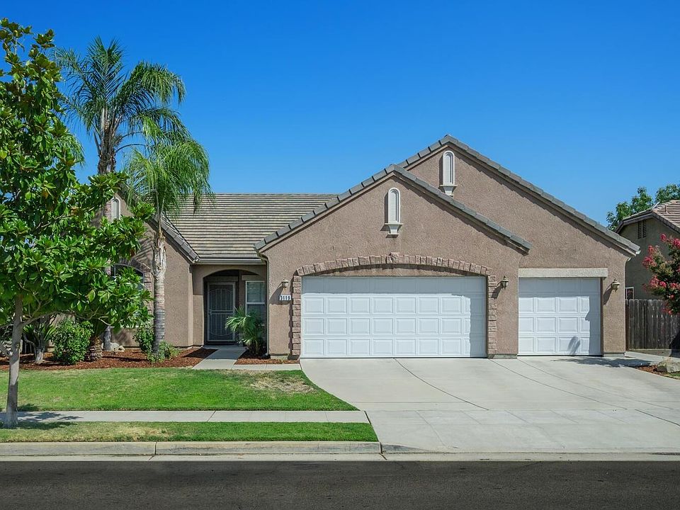 Fabulous single story, 4 bedroom, 2 bath, 3 car garage situated on a 7875 sq ft lot in CUSD! This lovely home is south facing and exudes curb appeal. Open floorplan allows great entertaining spaces from the large kitchen with peninsula island, living room, formal dining and great room. This home features Whirlpool appliances, gas cook-top, generous pantry, wood laminate flooring in main living and traffic areas, granite kitchen counters, gas fireplace and Plantation shutters. Enjoy spending time in the backyard with friends and family. There is recently planted sod and large sideyards. The backyard is perfect for a future pool, Jacuzzi and play area. Note: bed and bath count is different than tax records; if important, buyer to verify.
