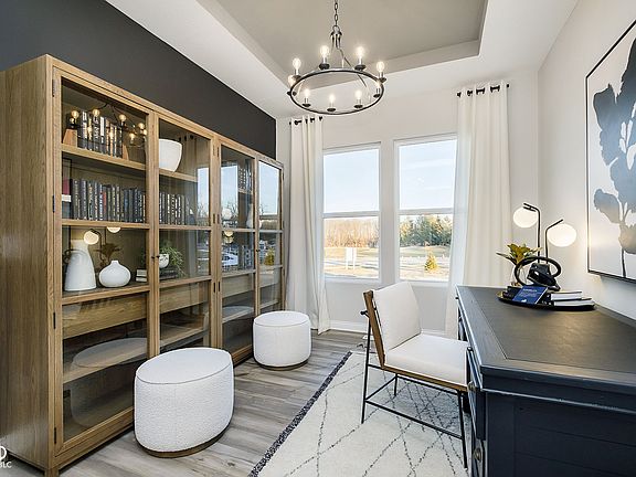 Experience the elegance of the Palmary floorplan in Sagebriar by Del Webb, a premier 55+ community. This thoughtfully designed home features a modern kitchen with 42" Landen white cabinetry, Calacatta Elysio Quartz countertops, a built-in stainless steel oven and microwave, gas cooktop, and a spacious island-ideal for both everyday meals and entertaining. The kitchen flows seamlessly into the gathering room with a cozy fireplace with a granite surround, as well as a charming cafe dining area, creating a warm and open living space. Step outside to the covered patio from your sunroom, perfect for relaxing or hosting guests. The luxurious owner's suite offers a peaceful retreat, complete with a tiled shower, double-sink vanity with quartz countertops, and a generous walk-in closet. The secondary bedroom enjoys easy access to a conveniently located full bath with a shower just steps from the door-perfect for guests or everyday use. A versatile flex room, enclosed with doors and situated just off the foyer, can serve as a home office, study, or additional bedroom to suit your needs. Luxury vinyl plank flooring runs throughout the main areas of the home, offering both timeless beauty and long-lasting durability. The Sagebriar by Del Webb community is where lifestyle takes center stage. Residents enjoy TV streaming and internet included, plus convenient seasonal opening and closing of irrigation systems. The resort-style amenities include indoor and outdoor pools, a state-of-the-art fitness center, pickleball and bocce ball courts, and a clubhouse featuring social programming led by a full-time Lifestyle Director. A high-tech simulation room offers virtual golf and other sports, while miles of walking trails, pocket parks, and a dog park encourage an active, outdoor lifestyle. Sagebriar by Del Webb offers the perfect blend of tranquility, activity, and convenience.