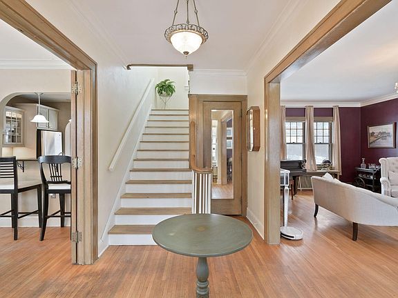 Classic center hall Colonial is now ready for its final touch ups. The home does need some Gentle Refurbishing. Home features 1920s charm and is one of the original homes in the neighborhood. Main level contains a nicely updated kitchen with informal dining, breakfast bar, large dining room with fireplace and a family room. The lower level is finished with a family room with fireplace, laundry and large storage room. The back yard is full of plants under the snow. There is also a newer oversized two car garage. Home is being sold in its current condition.